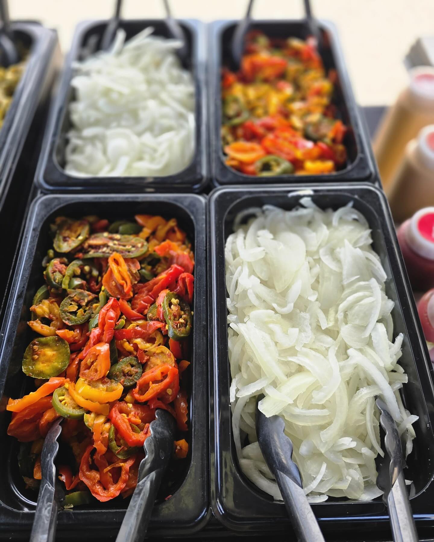 Lettuce, Tomatoes, Onions, Pickles, Hot Peppers, Green Olives, Ketchup, Mustard, Relish, Pesto Mayonnaise, Chipotle Mayonnaise, Signature Burger Sauce, BBQ Sauce & HOT Sauce !