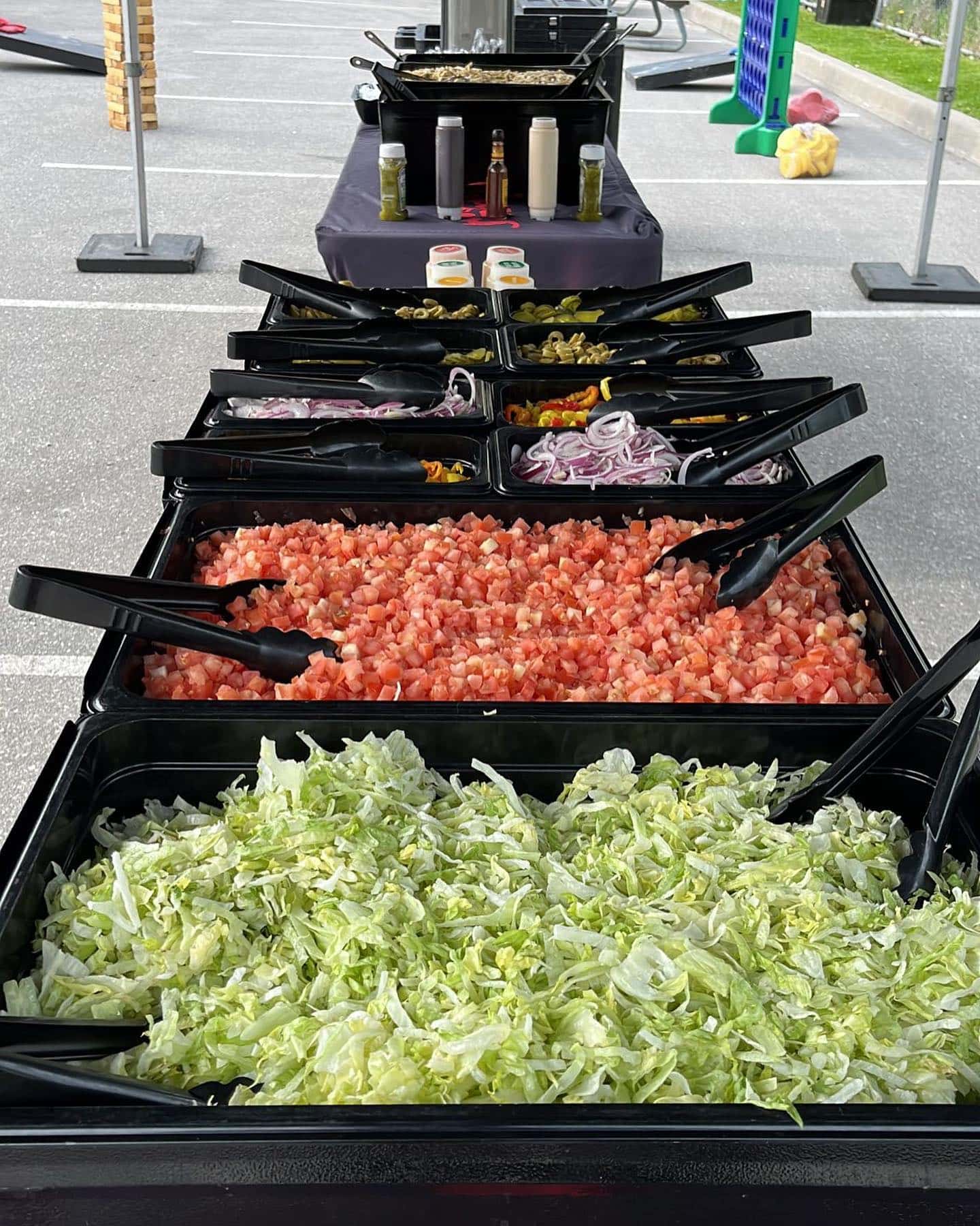 Condiments Include: Fried Onions, Roasted Sweet Peppers, Hot Mustard, Lettuce, Tomatoes, Onions, Pickles, Hot Peppers, Green Olives, Ketchup, Mustard, Relish, Pesto Mayonnaise, Chipotle Mayonnaise, Signature Burger Sauce, BBQ Sauce & HOT Sauce !