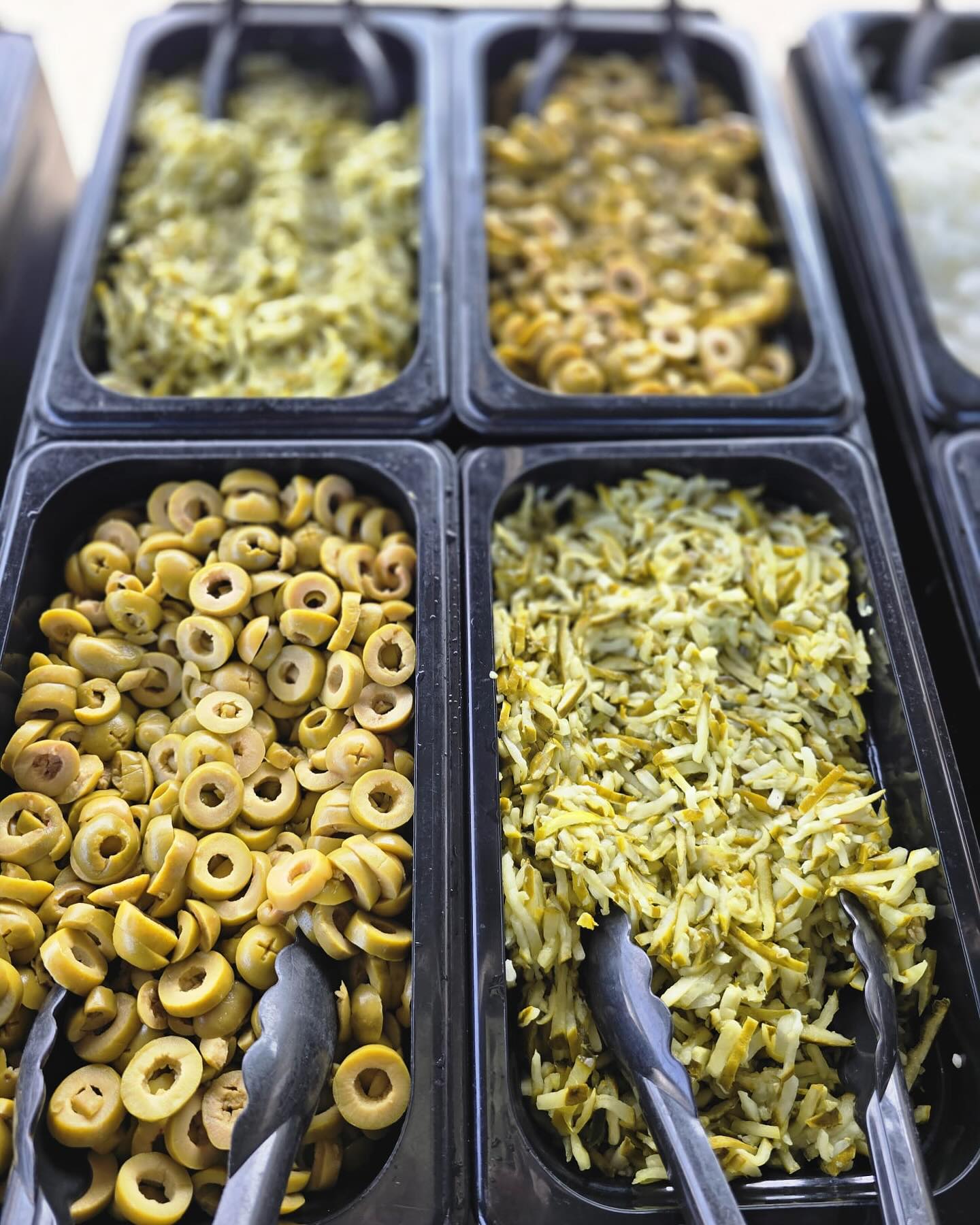Lettuce, Tomatoes, Onions, Pickles, Hot Peppers, Green Olives, Ketchup, Mustard, Relish, Pesto Mayonnaise, Chipotle Mayonnaise, Signature Burger Sauce, BBQ Sauce & HOT Sauce !